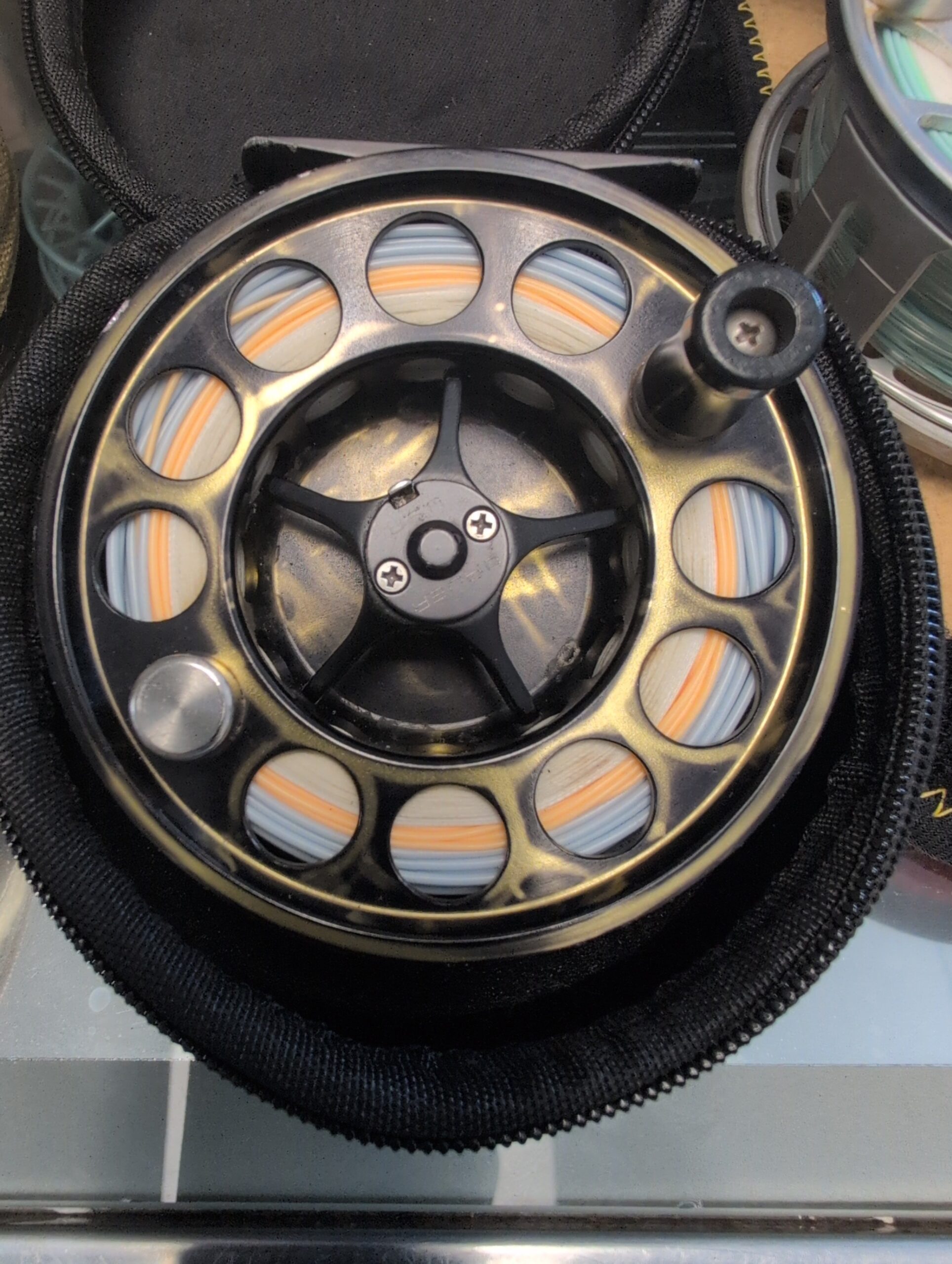 a nice and clean fly reel loaded with backing and a Scientific Anglers – Mastery 8wt – WF – F fly line ..