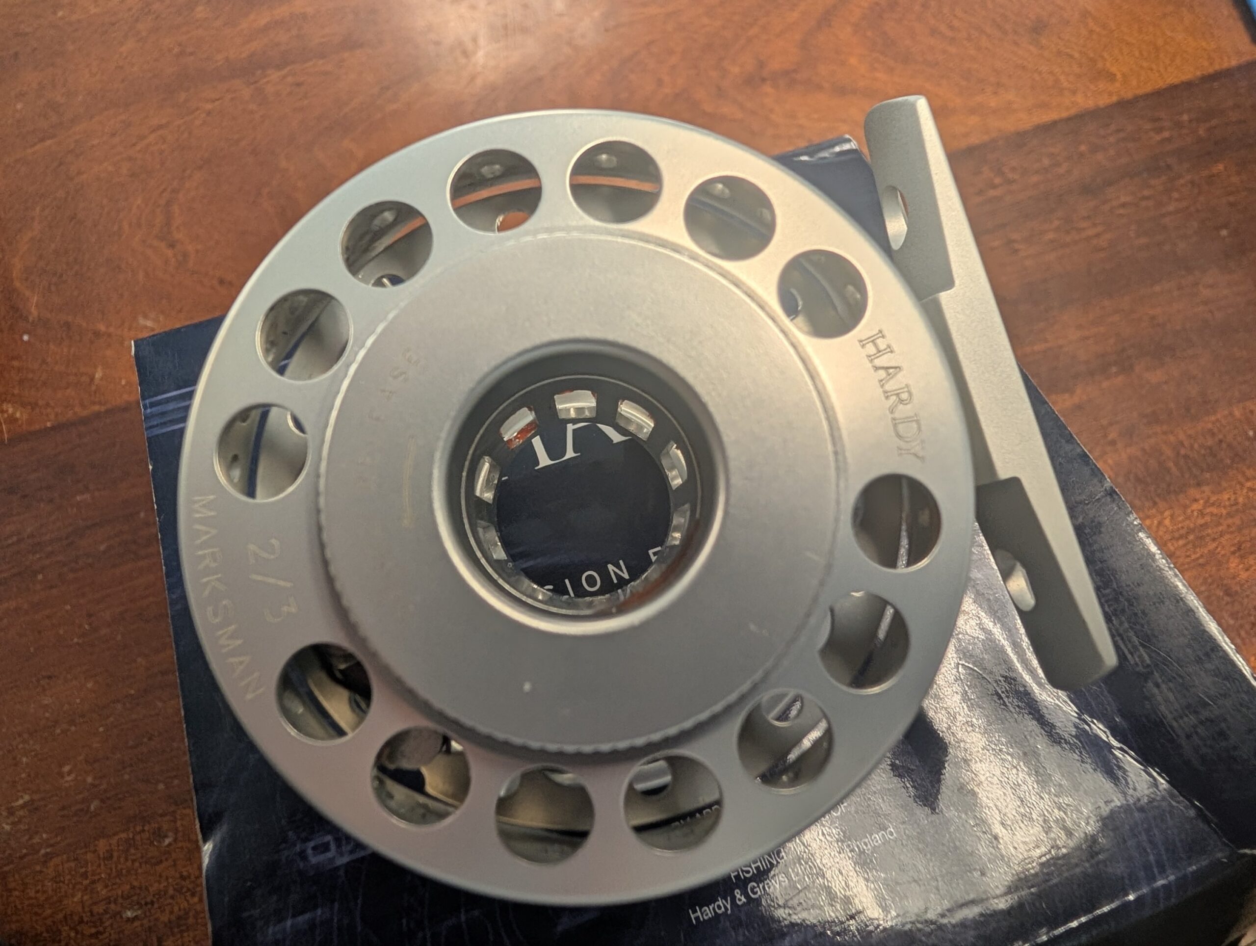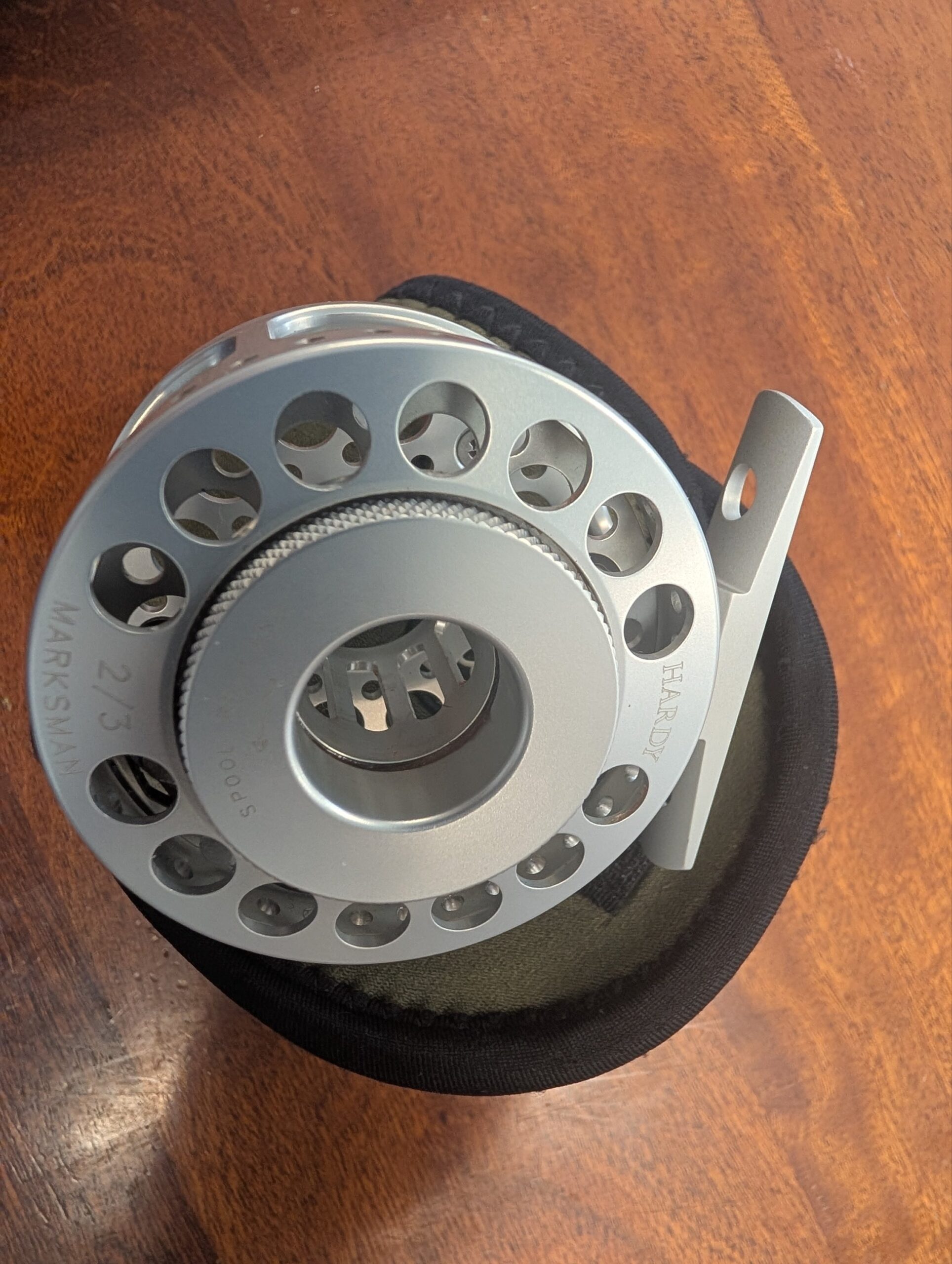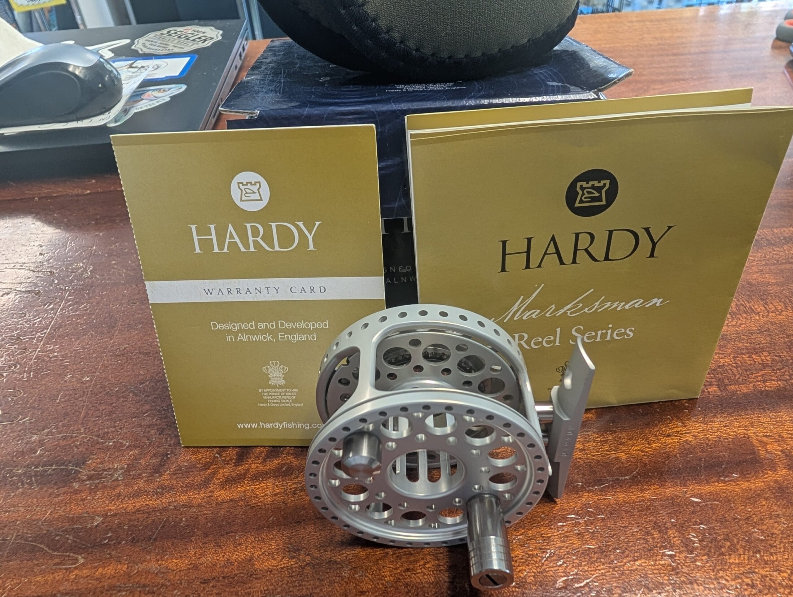 Hardy “Marksman 2/3” Fly Reel that comes with everything as bought when new .. this reel shows signs of handling, but was never used .. not easy to find and it won’t last long ..
