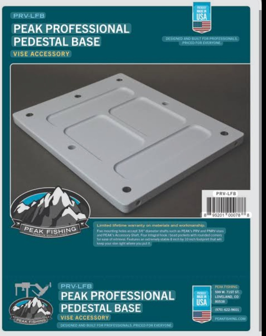Five mounting holes accept 3/8″ diameter shafts such as PEAK’s PRV and PNRV vises and PEAK’s Accessory Shaft. Four integral hook / bead pockets with rounded corners for ease of retrieval. Features an extremely stable 8″ by 10″ footprint that will keep your vise right where you put it.