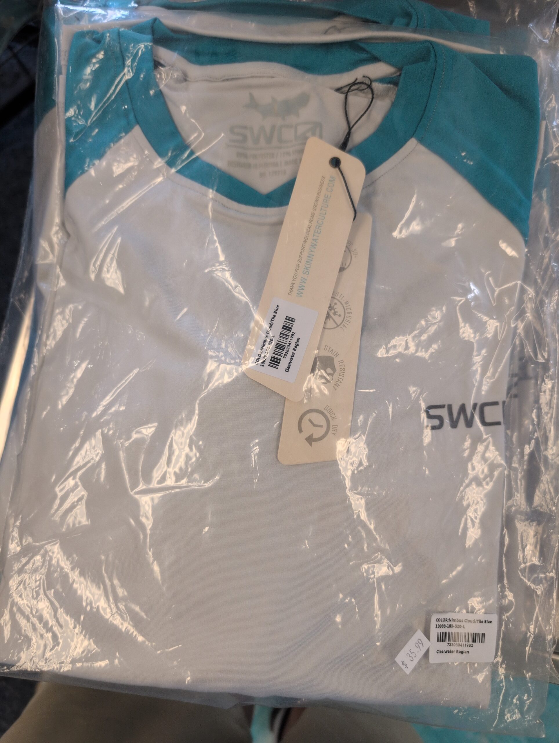 SWC – Skinny Water Culture – Clearwater Raglan Long Sleeve Shirts – Nimbus Cloud & Tile Blue .. .. Very Limited Quantities .. Buy Now !