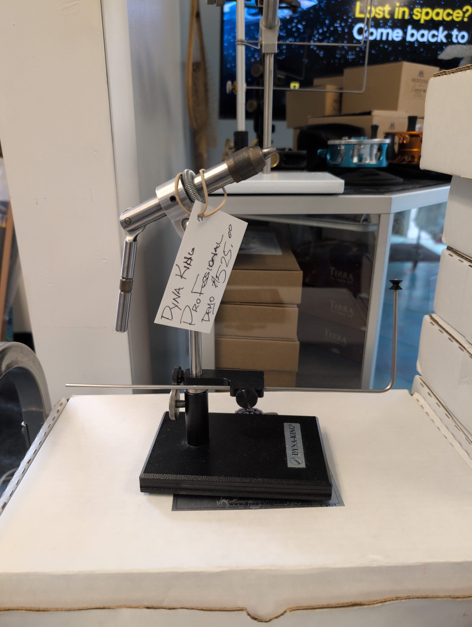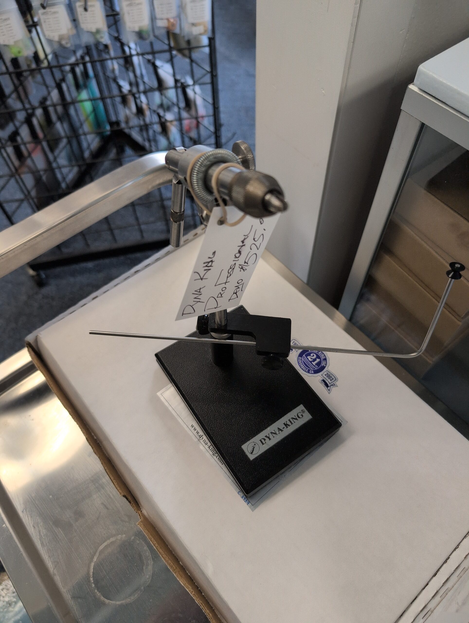 Dyna-King “Professional” Fly Tying Vise w/ Pedestal Base. The Professional is a popular vise with 360 degree rotation and is fully machined from stainless steel and aluminum.