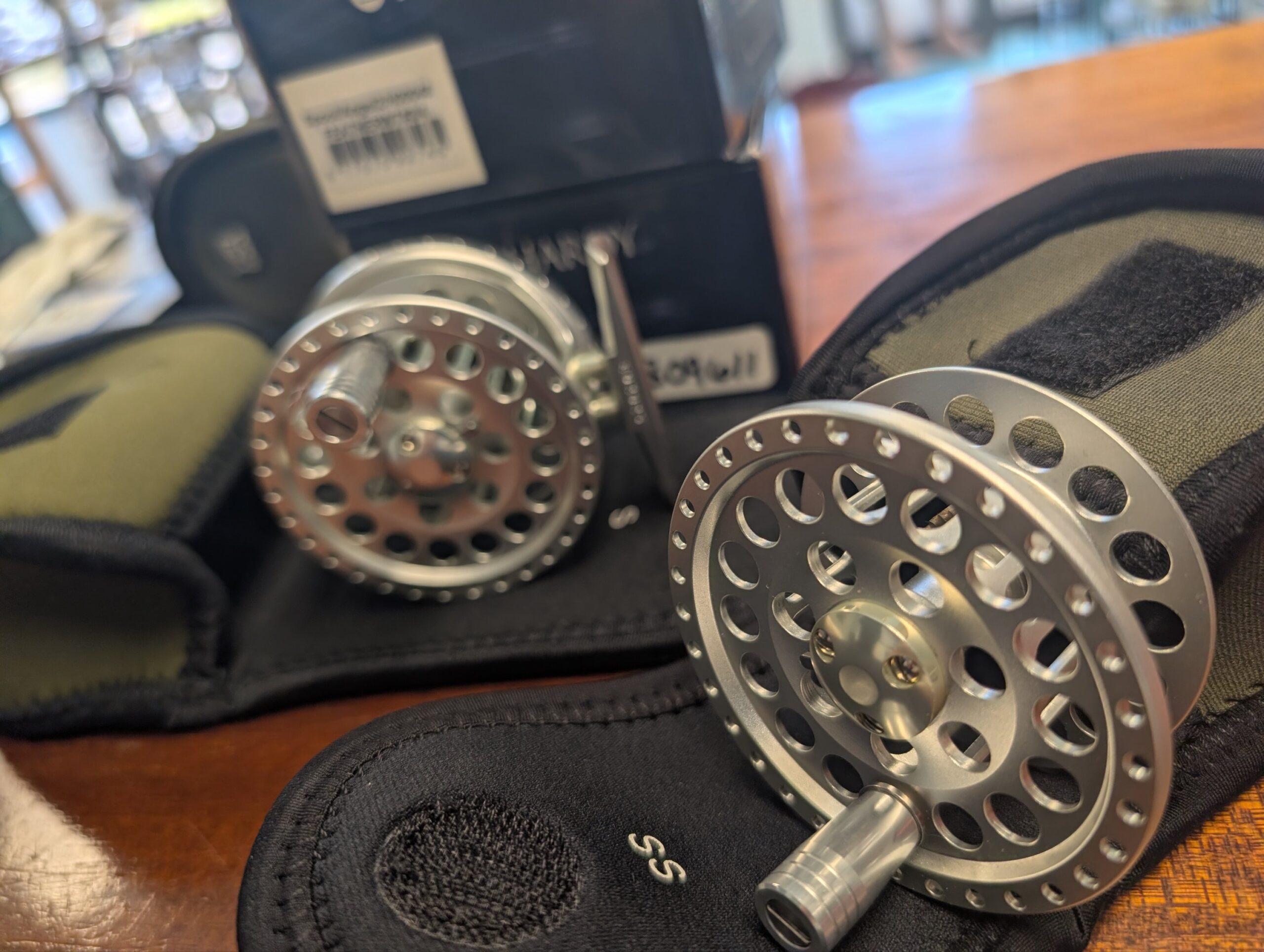 this reel is new in box with all paperwork and a spare spool in case and box also .. this only flaw in the entire set is when they were shipped, the boxes are labeled 3/4., when in fact they’re 2/3 reel and spool .. everything looks as new ..