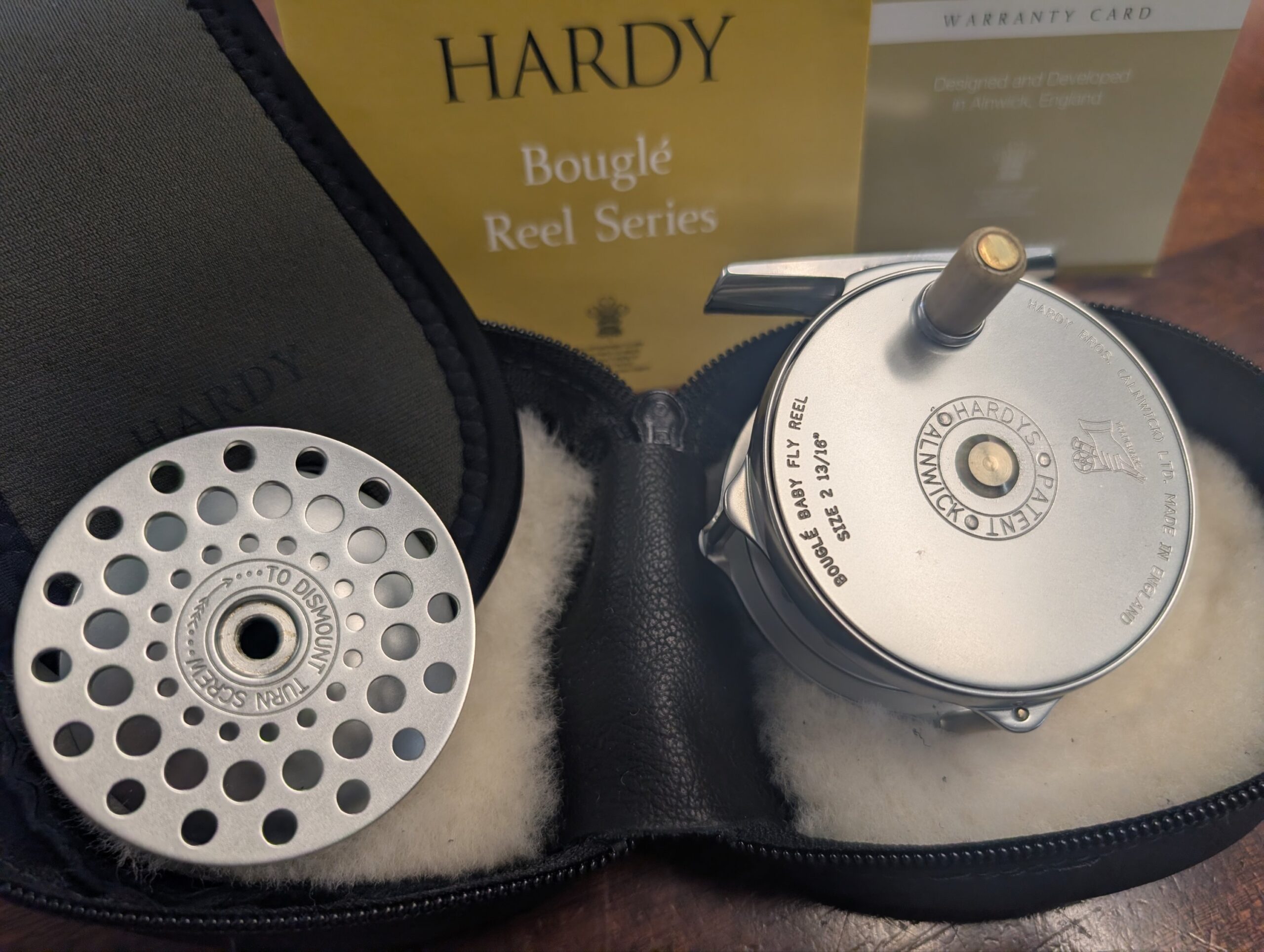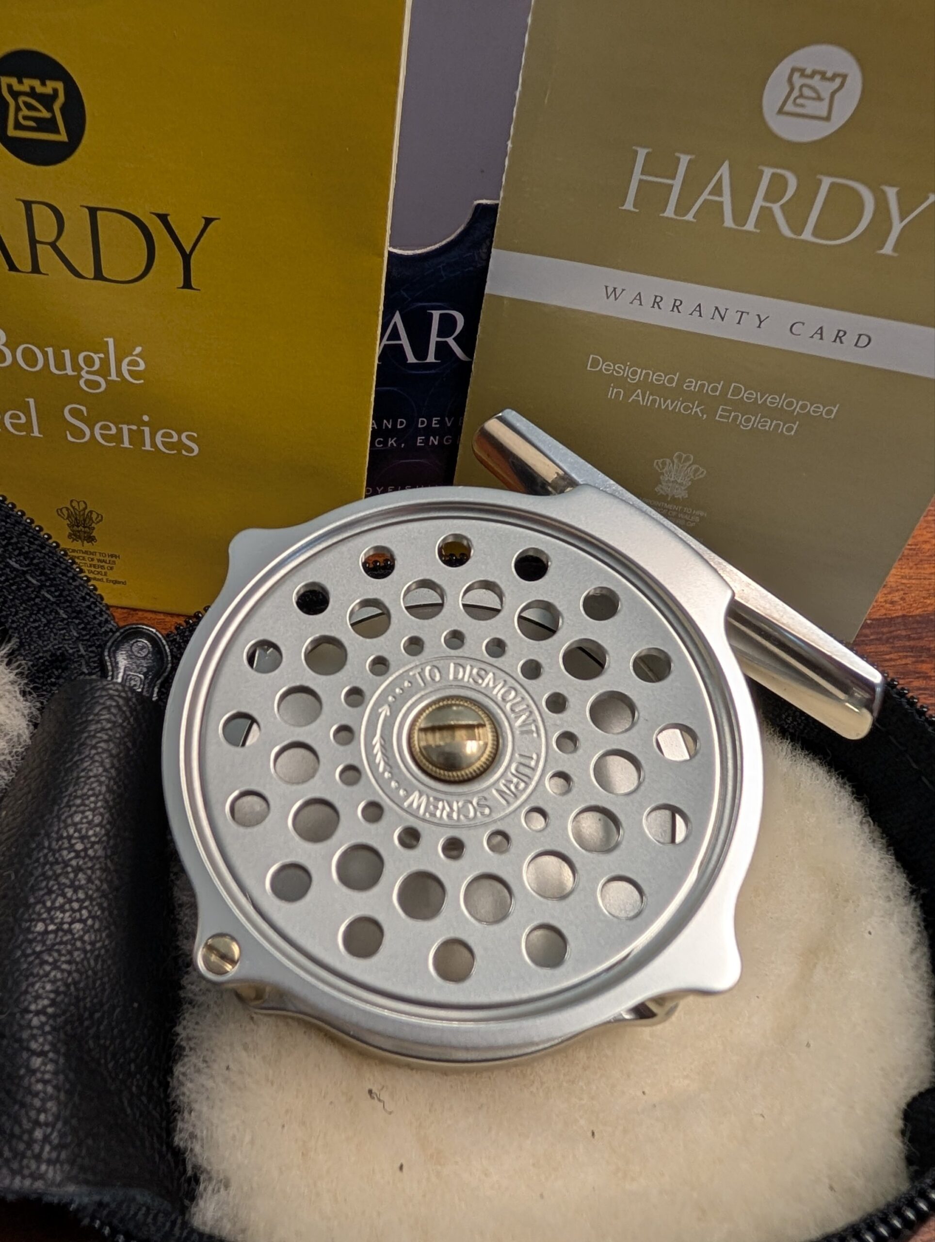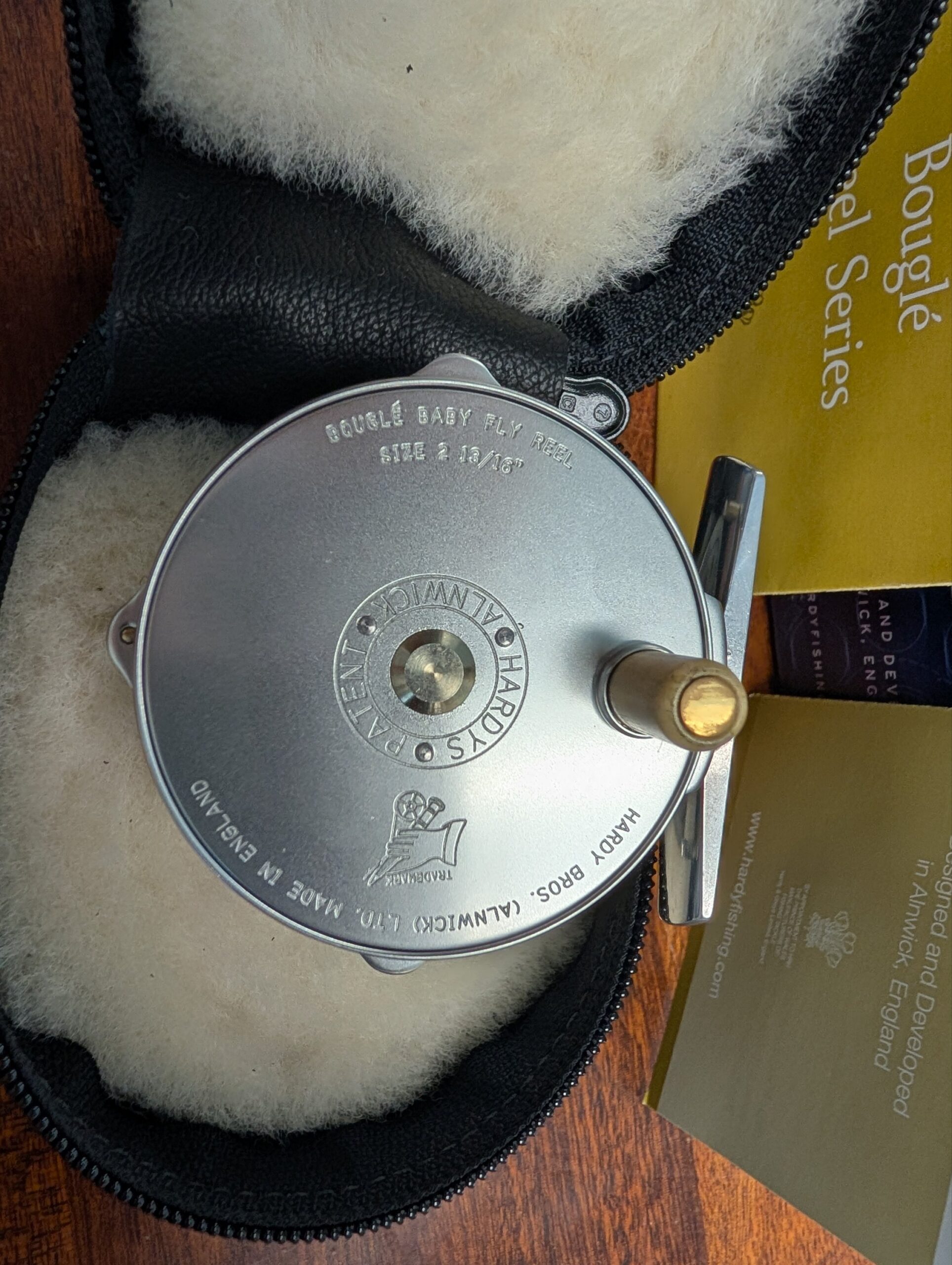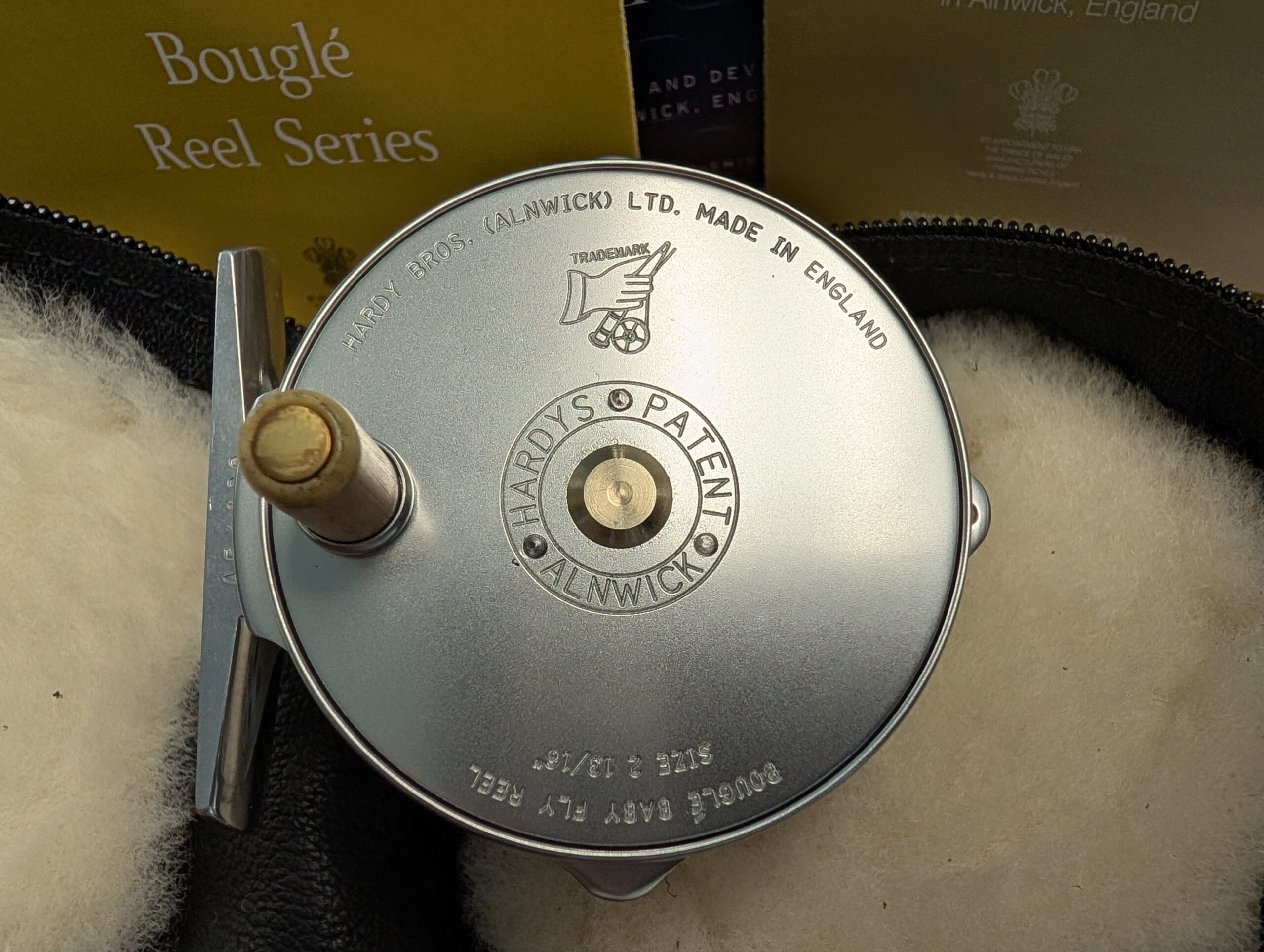 Made by time served Hardy Bros. reel makers in Alnwick, England, this Bouglé reel comes presented in a beautiful, UK made, soft leather, sheepskin lined reel case.