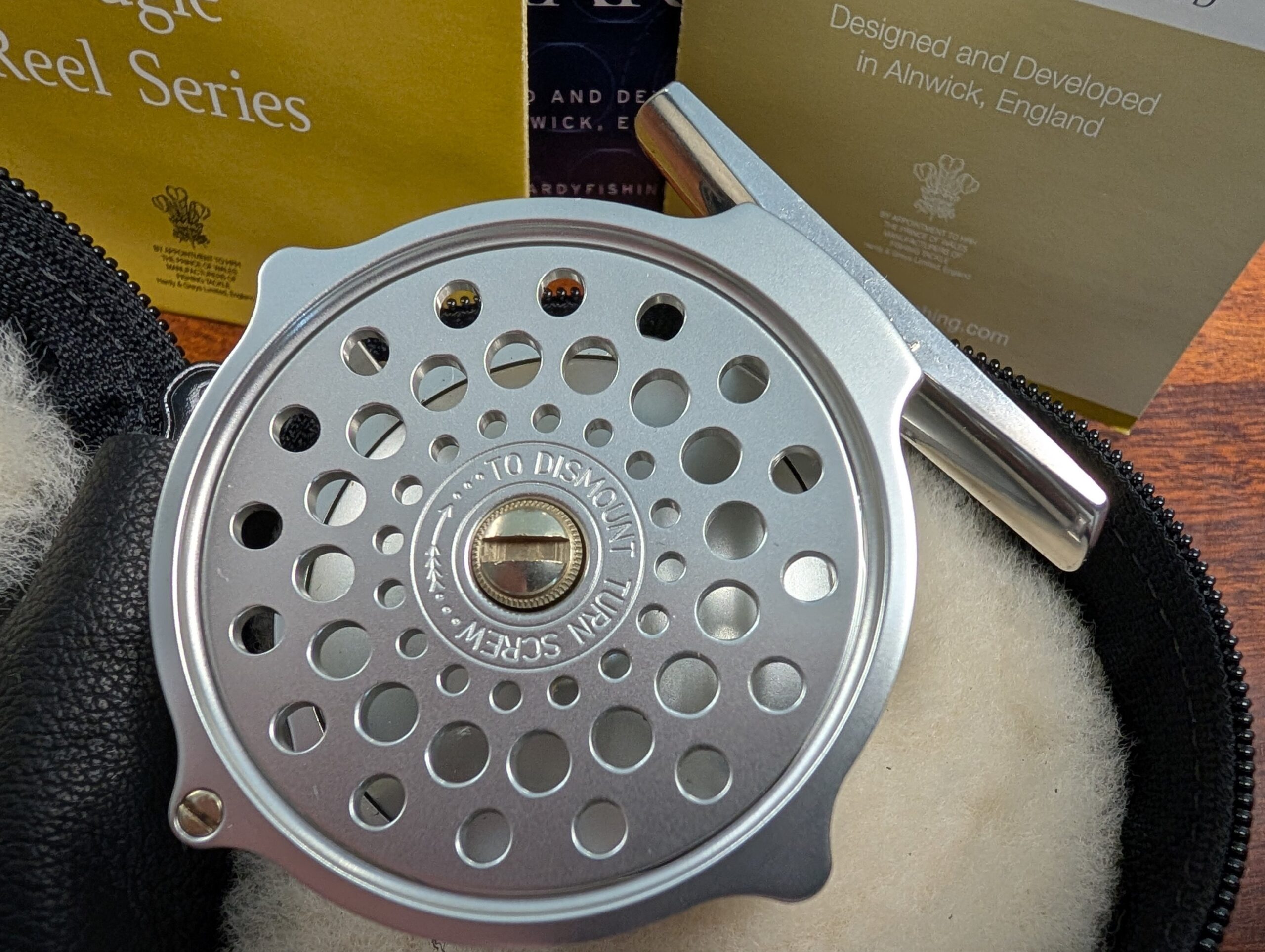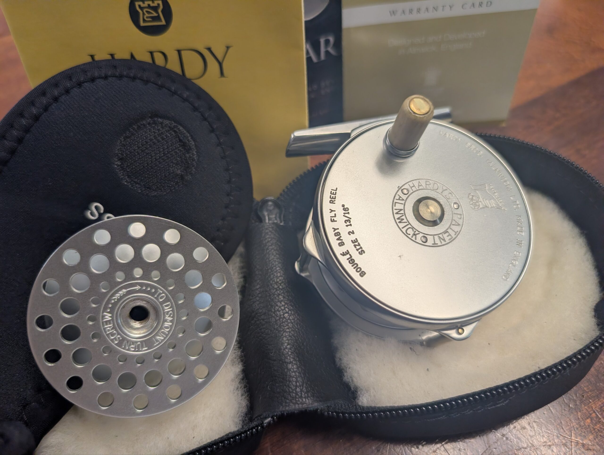 • Supplied with Hardy Bros. soft leather, sheepskin lined reel pouch