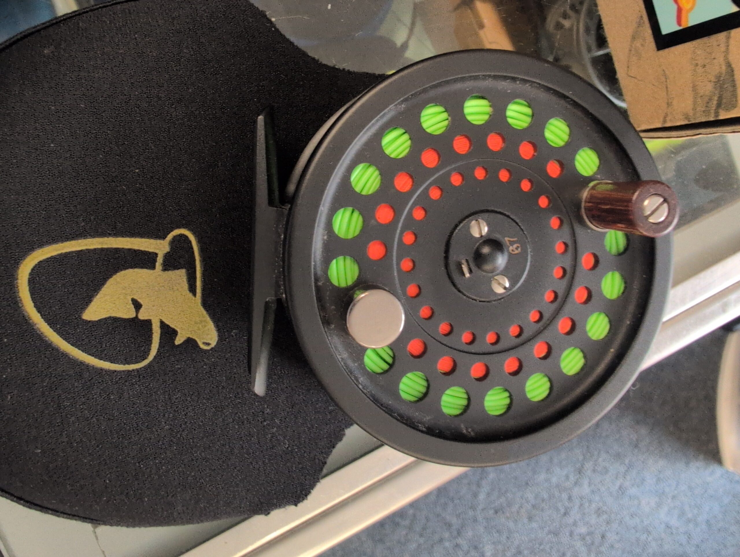 this reel is in very good condition and shows slight signs of use .. in perfect working condition and loaded with backing and a 6wt – WF – F fly line ..